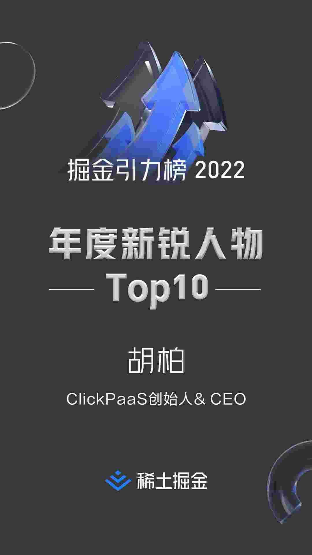 2022年1月6日,,,,稀土掘金社区第一届「掘金未来大会」成功举办,,会上发布了“2022 稀土掘金引力榜 年度新锐人物”榜单,,上海爱湃斯科技有限公司(简称GOPAY钱包)创始人及CEO胡柏实力入选年度新锐人物TOP 10。。。